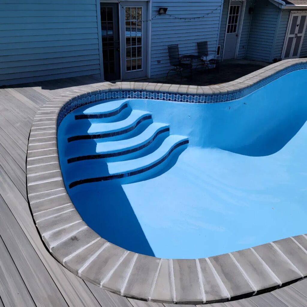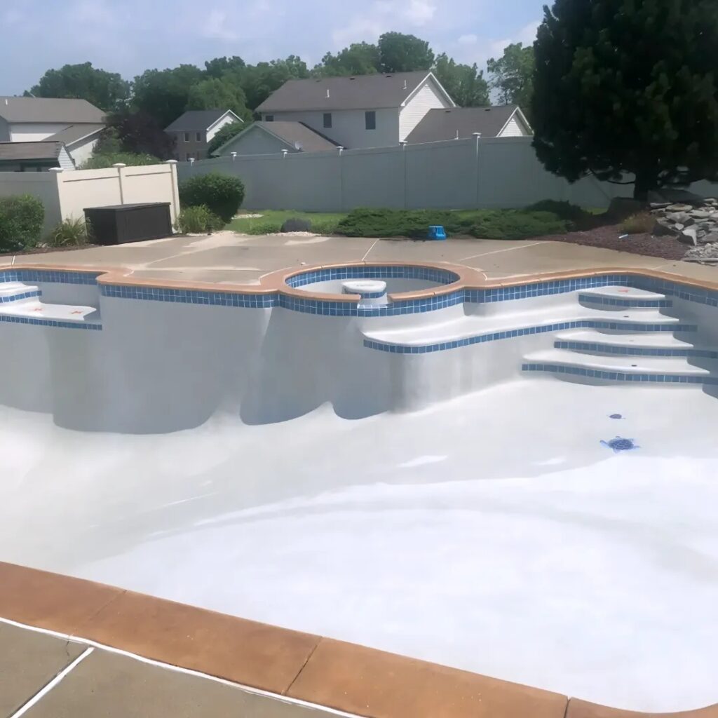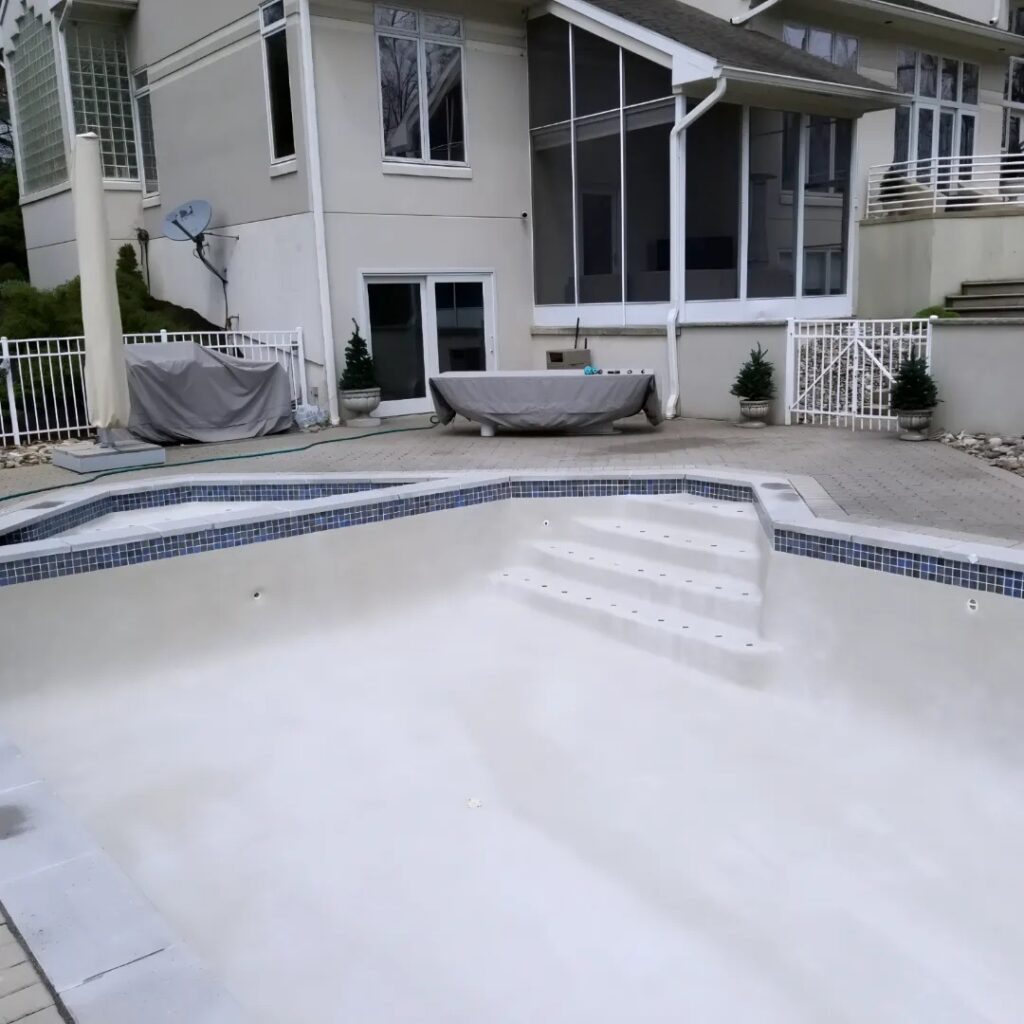 Waterline tile, coping, deck surfaces, and structural pool walls. Pool environments are particularly demanding, and repair work needs to account for chemical exposure, water pressure, and constant temperature changes.